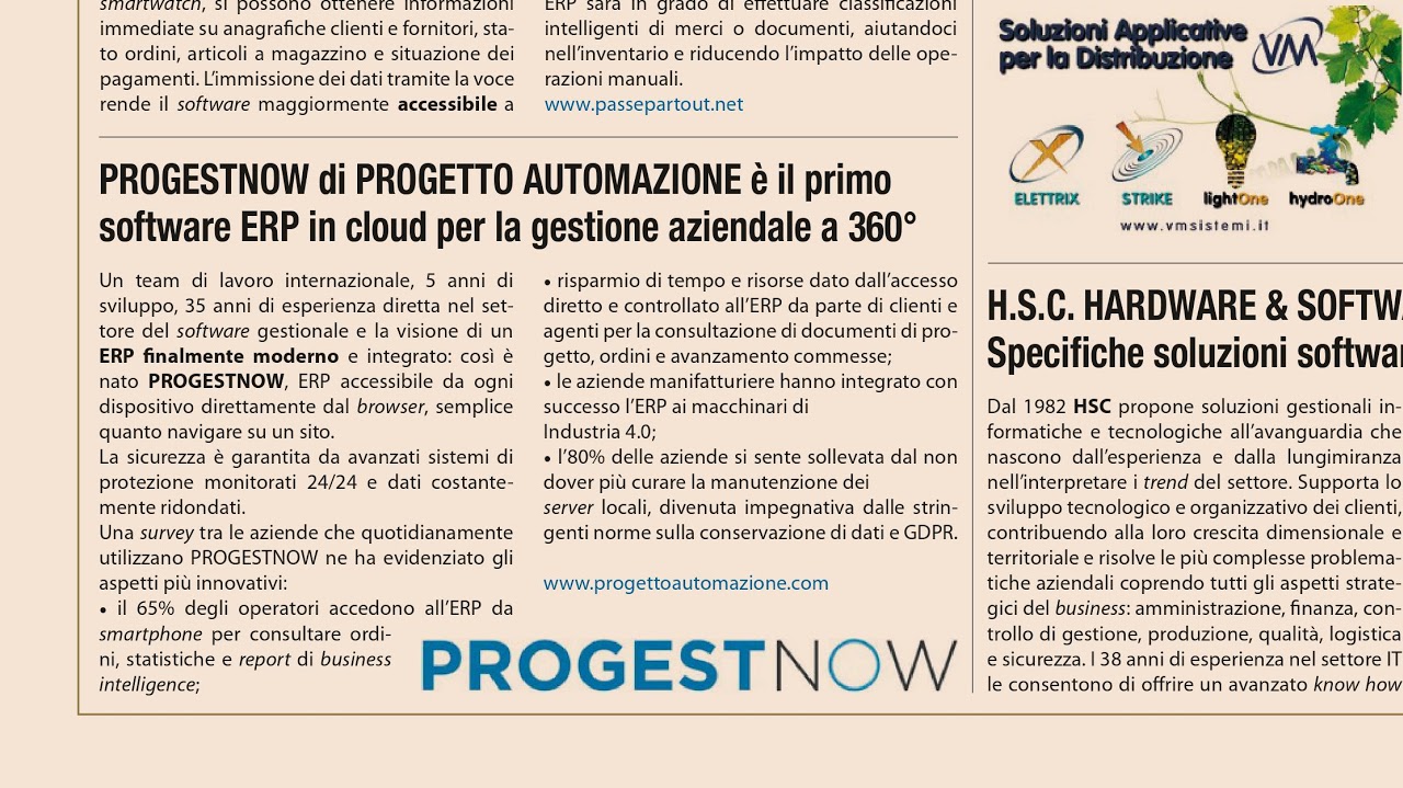 Il Sole 24 Ora dedica un articolo all'innovazione di PROGESTNOW - 2019